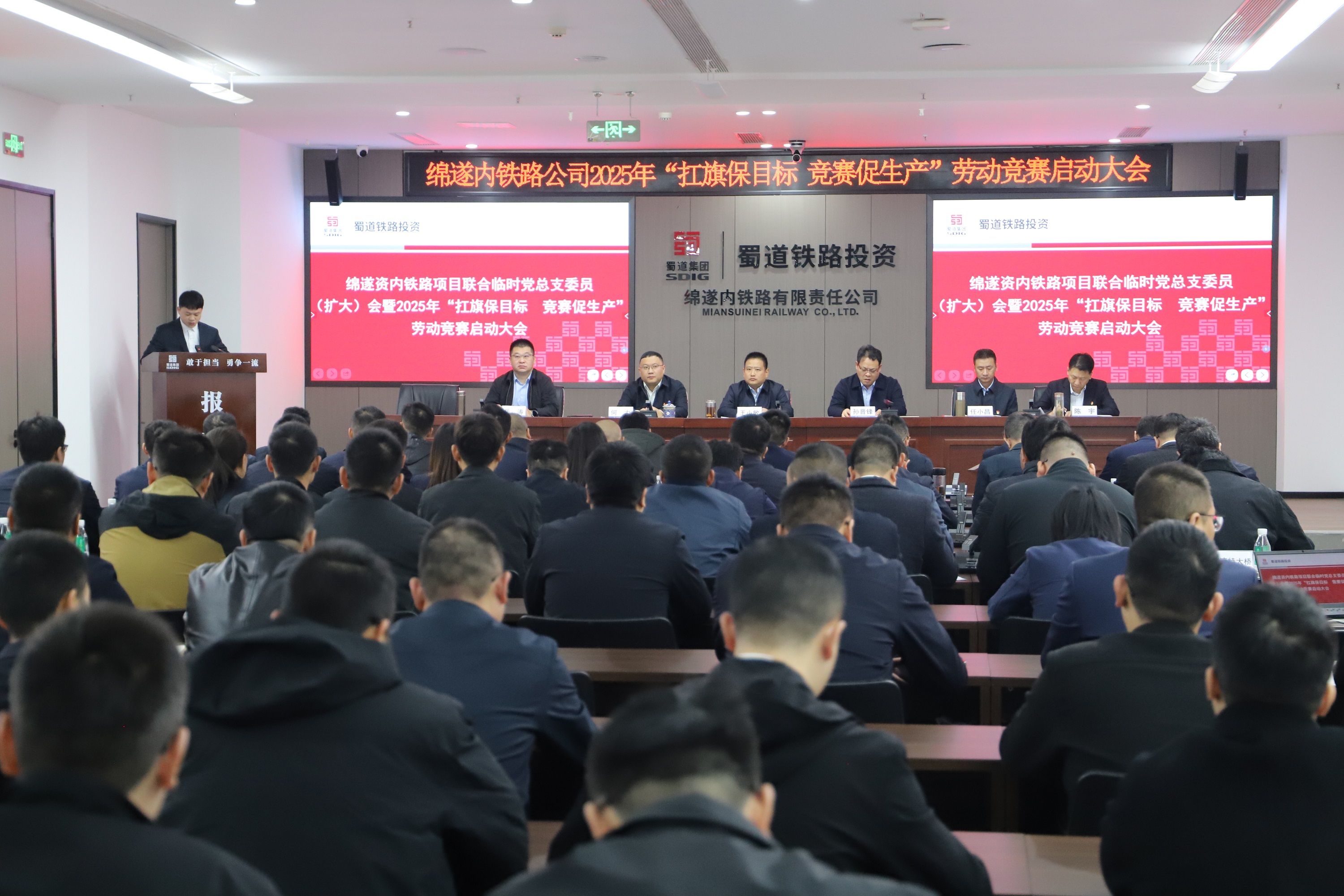 11月3日,绵遂内铁路公司组织召开项目联合临时党总支委员(扩大)会议暨2025年“扛旗保目标 竞赛促生产”劳动竞赛启动大会。