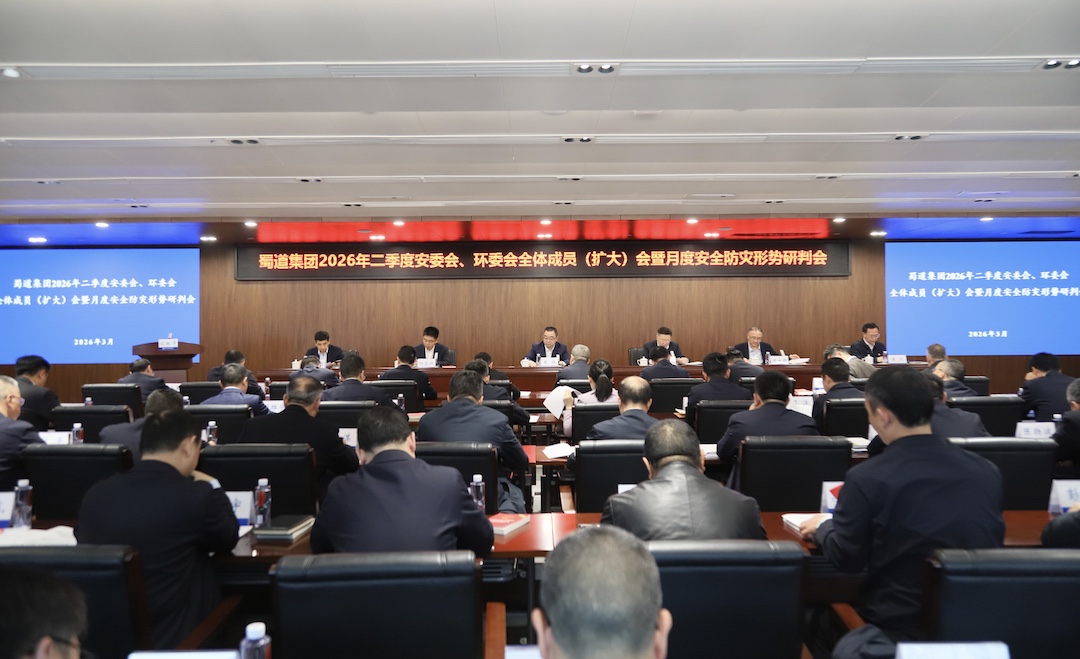 3月30日,蜀道集团召开2026年二季度安委会、环委会全体成员(扩大)会暨月度安全防灾形势研判会。会议总结一季度安全环保工作,听取各安全生产专业委员会总结汇报,分析当前安全环保风险形势,安排部署下阶段重点工作。集团公司党委书记、董事长、总经理张胜出席会议并讲话,党委副书记、董事、副总经理丁应虎主持会议,副总经理蒋永林通报相关情况。