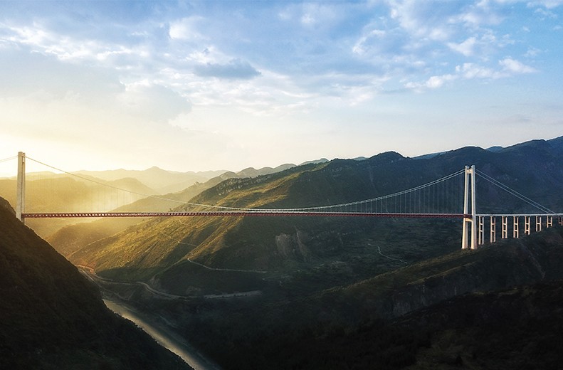 赤水河红军大桥,全长2009米2019年9月建成通车,位于川黔交界的乌蒙山区和中国工农红军“四渡赤水”的革命老区,是世界上山区同类型钢桁梁悬索桥梁中第一高塔、第二大跨的峡谷大桥。 ​