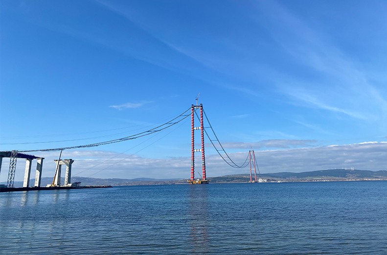 土耳其恰卡纳莱大桥,全长3563米,主跨长2023米,为双塔三跨悬索桥,双向六车道,跨越土耳其达达尼尔海峡,建成后将成为世界最大跨径的悬索桥。 ​
