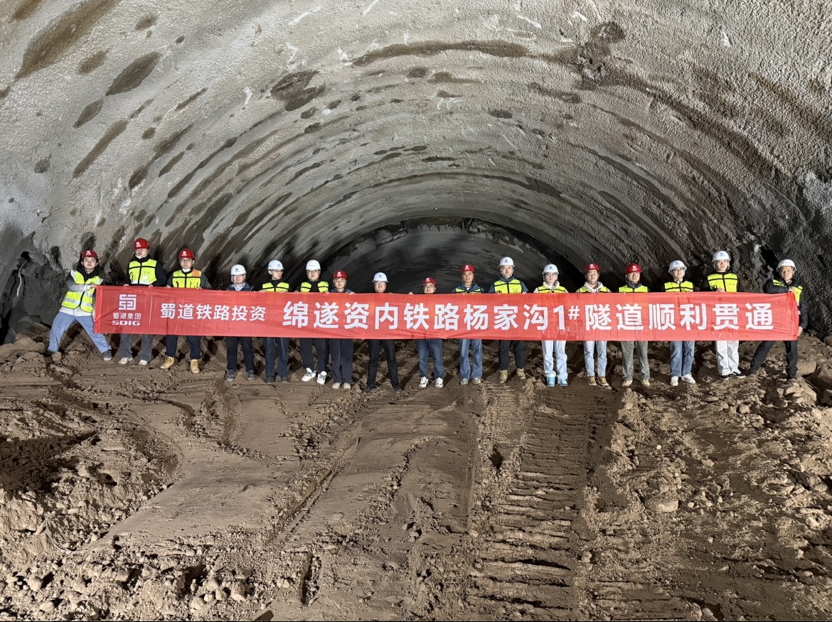 1月3日,由蜀道铁路投资集团主导投资、中建八局承建的绵遂资内铁路杨家沟1号隧道顺利贯通。